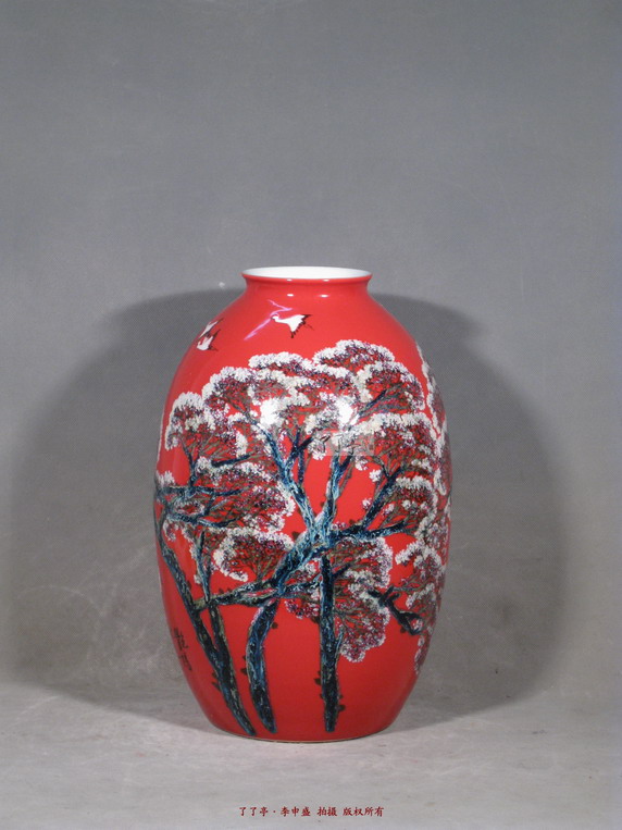 正红色或者叫大红、亮红色,是中华民族自古就崇尚的颜色,是中华民族特有的文化图腾和精神皈依。所以红色料一直都是景德镇千年来陶瓷工作者的研究重点,它在陶瓷制品装饰中具有十分重要的地位,其研究结果、书籍、论文已历经千百年的历史沉淀。而在陶瓷艺术走到今天进入了现代生活中,这些体现热烈、向上格调的红色的瓷器装饰艺术深受收藏爱好者的青睐和喜爱。