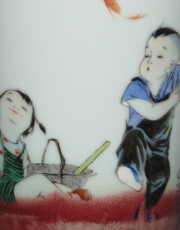 过年的时候,诸葛伟老师给了一件他的精品,因为不能登载出来防止别人仿制,所以截取了一个画面。这件孩童钓鱼的作品很好地体现了诸葛伟的风格,画面绘两童子兴致勃勃地一起钓鱼的情景。这件作品人物刻画生动,很有意境,是越看越有味道。 。(了了亭 李申盛/文)