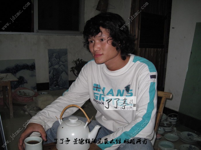 陆寿义 (广西桂林)1985年生 2009年毕业于景德镇陶瓷学院 陶艺系 本科 2007年进入陶艺地摊市场,是当时地摊市场创建的元老级人物,主要画一些陶艺盘子,杯子等生活陶艺,现从事青花艺术创作。月收入不稳定,两千多元左右。毛南族。如今已把自己的弟弟、堂哥、侄子,(厨师、美发师、饮食行业)都转到了陶瓷艺术行业里面来了。他的亲戚们是于09年4月份来到景德镇,先是收到陆寿义的邀请,后看到陆带回老家自己做的东西,觉得很好玩,因而想来景德镇学习,也愿意抛下自己当时的工作。现在他的亲戚们收入维持到一个月4、5百元。主要从事的当老师的助手,堂哥是拉坯,修坯、做泥塑。弟弟做私人助手从事泥塑,侄子刚刚到景德镇,现在初始化学习当中,他的目标也是景德镇陶瓷。