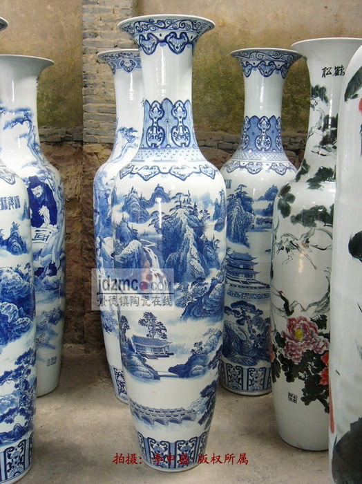 景德镇的千件乃至万件的大瓷器花瓶,我一直再想它到底是干什么作用的,原来了了亭-武汉 的武昌分店有两个万件的,是一对高温色釉的鹿寿图。为了把这两个弄到徐东分店那可是费尽了心思,等这一对瓶子放好了,我仔细研究了好久,就是研究不出来它俩有什么艺术可言,除了那高耸入云的3米高度,让看着它的人有一种新奇感,其他的似乎就没有了。 有的时候在市场上听到什么万件,千件的花瓶是什么全手工一次拉坯成形,扯谈,那么大一个花瓶,你一次成型看看,姚明也就2米多高,他也拉不出来啊。这类万件瓷器,都是手工拉坯没有错,只是其中分开成为了几节,在后面的工序中粘合在一起而已。 还有说什么重工粉彩的万件瓷瓶是两次高温烧成,这又是瞎扯了,瓶子成瓷是高温,后面那个粉彩我不管你是轻工还是重工,也只能烧中温啊,难道作坊不想要粉彩画面了,想让它挥发掉? 更为可恶的有些恶商说,什么景德镇大瓶子难烧,特别是万件的瓷器。是的,有这个说法,那是几年前的事情,这两年,我来烧这些瓷器,也没有遇到过什么问题,成品率很高。只是瑕疵问题难以避免,多多少少总有一些。 倒是有一件事情感觉比较好,就是万件的瓷器能够无瑕疵倒是非常的少见,这兄弟俩瓶高温色釉烧得也鲜亮,作坊竟然完成我们的要求,一点瑕疵都找不到,不得不佩服啊。 这两个万件瓶子在店里面放了大概有一年之久,倒是挺吸引人的,做迎宾非常不错。我想这恐怕是万件大瓶的唯一作用吧。[未完,待续二,讲叙万件大瓶的具体价值]