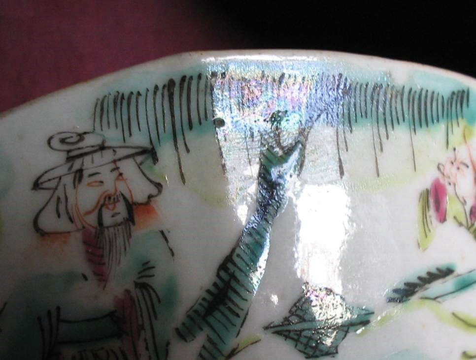 这两天我看到一个老藏友的一批作品,他是专收藏现代陶瓷的,算下来,他的这些作品应该是在2000年前后收集的一批。那个时候给他寻觅的戴、陆、王等等十几个大师的作品他藏藏掖掖的,怕我邀功,呵呵,耍小心眼了。但是我看到很大一部分当年收藏的粉彩瓷器均出现了不同的哈利光。其中一部分作品的哈利光的强度极高,这计算年限也才8年左右。