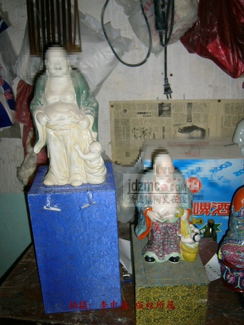 这是一批高仿雕塑中的几个图面,少数瓷器已经做旧,大部分看来是刚刚出来的。合着数量我估计在几百个左右,品种达数十种。制造作坊主很是得意,授权我可以拍照,同时也可以展示一两个图片。在作坊主的介绍下,我才开始明白他的得意之处了。 此类高仿雕塑瓷器中有几种类型,一种是照着图片来还原,这类瓷器仅仅只占其中的20%。因为其手下的老艺人很多,同时有一部分是相当高级的老技工,所以在还原上面都有一定的水准。但是作坊主还是遗憾无法生动的完全还原,毕竟差距还是在。技工就是技工,在还原的过程中,没有创作的灵性。 一种是原来的模具还在,只是破损后进行了精良的修补,并继续制作。还有一种就是一些名人的图章被保留了下来,这些图章仅仅只是用在制作精良的赝品上。作坊主收集这类遗留的模具,图章已经花费了巨额的资金,但已经通过出售仿制品,他已经几十倍的赚了回来。 这些本身也是作坊主的自我故事,其中图章的真伪性我没有时间去查证,陶瓷在线网站的很多鉴定图片相信能够为大家提供一些帮助。 从作坊主的长谈中,我分析了几点鉴别要领。一、多收集素材和资料,这些素材和资料可以很直观的帮助您区分作品的真伪。二、近代瓷器行业里面水很深,收藏爱好者不要贸然进入,您不可能进入到行业的深处。您有限鉴定资源对于仿制人来说不是难题,切勿过于自信。三、高仿成品的价格本身就很高,它进入和流动的群体档次不低,在那些街头展销会上基本上不会出现。而在其他的流动渠道上,往往会披上各种外衣,收藏者火眼金睛为妙。了了亭·李申盛/文