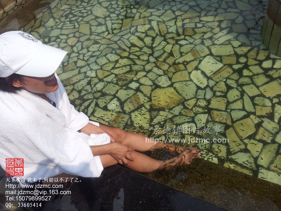 这些热闹项目玩玩了,就是泡温泉了,各种形式,各种功用的汤池,比如芦荟啊,绿茶啊,人参啊,红外线啊,足底啊,反正太多太多了,但是最有意思的是亲亲鱼,这亲亲鱼是2次收费,38元一人,有两个汤池,一个是大鱼汤池,一个是小鱼汤池,由于大鱼汤池没有人,我就先冲了进去,那大鱼那是亲亲鱼啊,整个一个咬咬鱼,食人鱼,我被咬的直叫。赶忙换了小鱼汤池,好多了,至少可以坚持几分钟不动了。