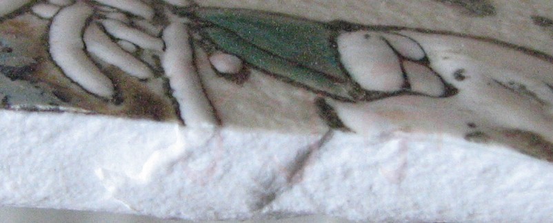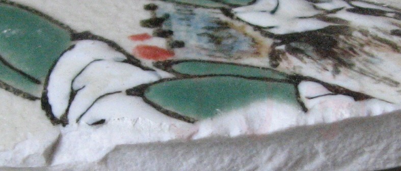 | 程曲流高温色釉水仙图破损后断面图片 | |||||