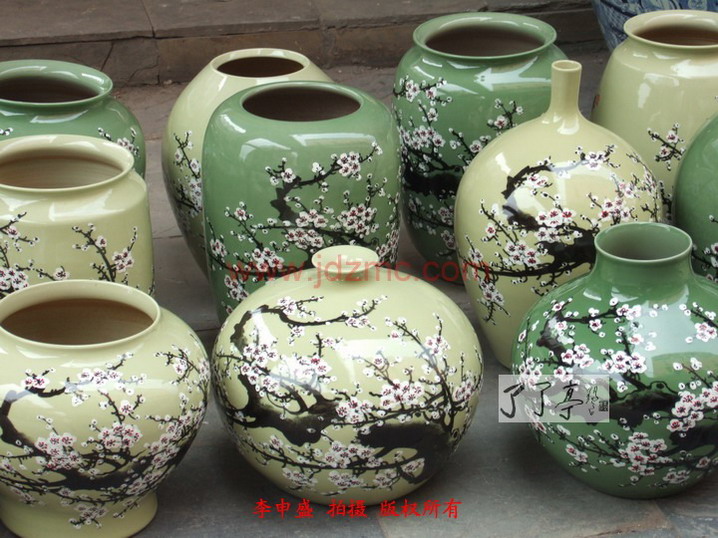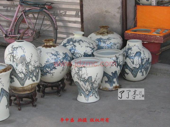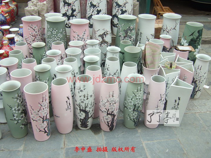 什么叫做大师,我觉得还有一个定义,那就是他的风格能够外延,能够形成一种经济,被市场仿制。呵呵,其实仿制根本上就不应该成为艺术家的绊脚石,艺术家也没有那么必要去看重他们,你艺术家的东西愿意被市场上的各种小工坊仿制是说明你这个艺术家的东西有水平有市场,是大家青睐的东西。当然不管仿制的像或者不像,但是也从一个方面发现了一个大师的市场号召力、眼球注意力还有市场占有率。陶瓷在线以前总结的刘远长哈哈罗汉经济,许多工坊一度甚至到目前为止都是靠仿制哈哈罗汉维系生计,那么我们今天就来看看新晋的中国工艺美术大师宁勤征的市场仿制品的情况。这些照片是我最近几天到处摸底拍摄得来的,其中包含了宁勤征大师的几种风格,一个是高温色釉白梅,高温色釉风景,还有变化后的表现形式,仿制品的水平确实粗糙,但是能够这样大量制作就说明一定有大量的销售,那么可以反证一个大师的艺术价值和市场价值。戴荣华老师的婴戏图一直深深的影响着一代人的釉上婴戏绘画风格,可见你大师作品不受欢迎,谁来仿制你的。了了亭·李申盛 实时播报