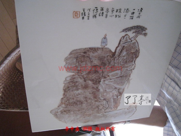 王锡良老师能不能画,现在还在画吗?这一直都是收藏界的朋友们的疑问。一些心怀叵测的人物到处败坏老艺术家们的晚节,这些散布谣言的人物中不少还是某些名家的后人。今天公布这样一组画面共三个瓷板,为王锡良大师08年中旬的新作,作品的风格特点不用笔者来介绍了,也务虚笔者评头论足。一个时代造就一个英雄,王锡良大师这个时代不可能重复,随着年龄的增大他的作品的风格也在变化,这和老人家的体力和精神有着直接的联系,不存在敷衍的概念。为什么我这样说呢?因为这三块板子都是留给王锡良老师三个子女的。应该说王锡良世家的家学、家风是非常严谨的,在这个物质时代中你完全可以从他们世家的作品中发掘出“清泉石上流”的意境。了了亭·李申盛/文