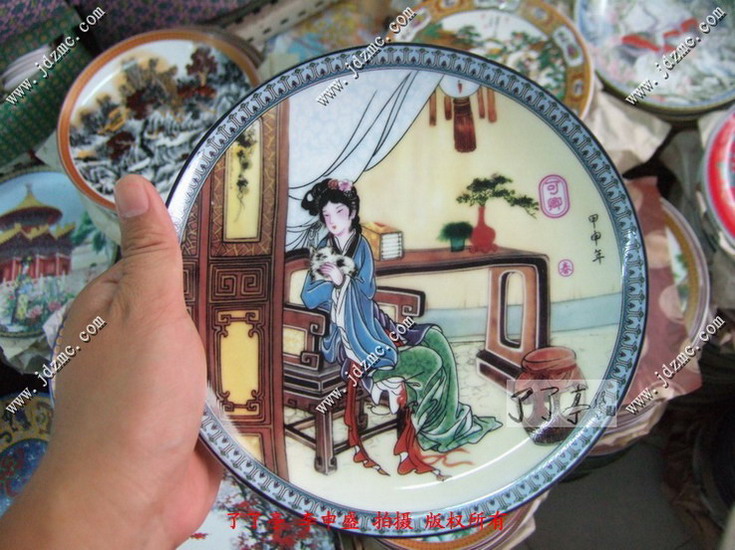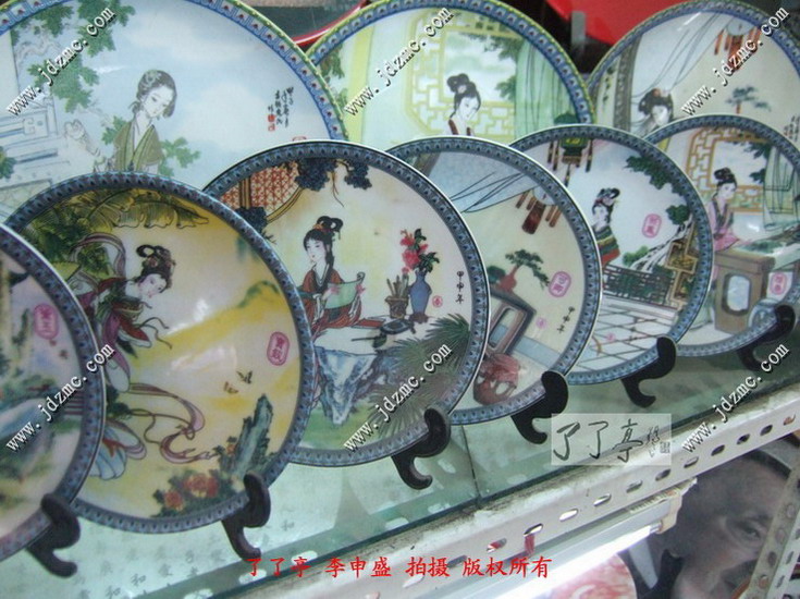 现在市场上的赵惠民粉彩十二金钗的贴花瓷盘作品的新品频频出现,新品并没有忠实原型的画面,应该说变化了很多。