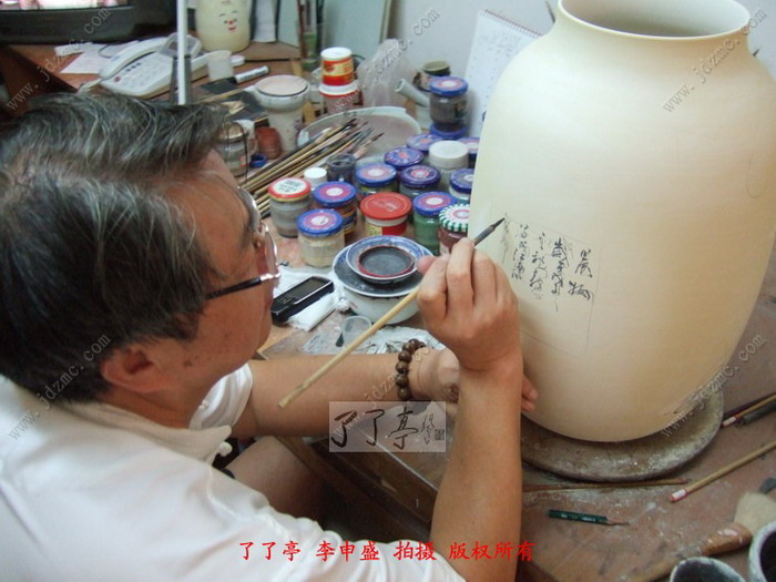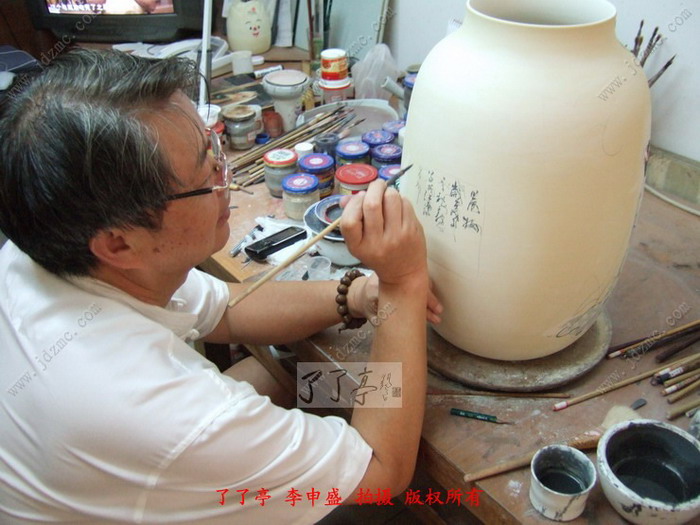 敢画不敢烧,现在是李一新老师矛盾的心理写照,在两次换窑以后,最近几个月烧制作品特别是大件作品屡次出现问题,要么是色彩发懵,要么是釉里红烧挥发,而且到今天为止,这股阴霾还在头顶挥之不去。前一个月从本站登录李一新老师的两个150件作品烧制前后对比文章的同时,李一新老师完成了两个300件作品,每一个300件作品李一新老师要耗时6天左右这六天中间不会画其他的任何作品,然后再画下面一个300件作品的时候中间李一新老师会停顿两天,可是耗时半个月心血的两个300件一个仕女图,一个竹林七贤都陆续因为色彩出现问题而令李一新老师很不满意,特别是后面一个竹林七贤是李一新老师专程为了了亭陈也君女士创新的一件作品,费尽了心力,用李一新老师在dv视频的话中来说,就是作者相当尽心尽力了,但能奈天何。 视频 10分钟,听李一新老师讲解问题出现的规律和特点