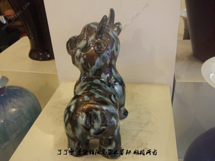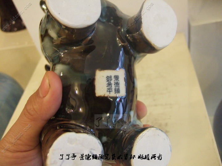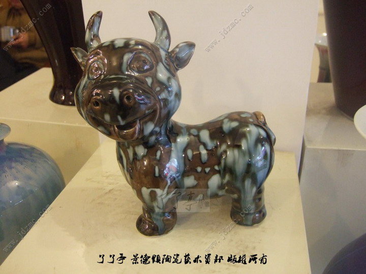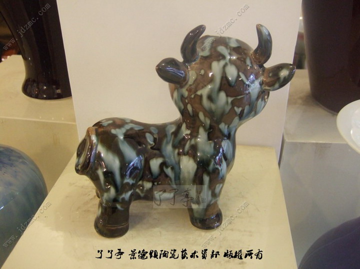 知道了邓希平老师制作了一个牛的颜色釉生肖,形象可爱,卡通味很重。我是80版的人,看机器猫、变形金刚长大的,就是现在电视上有动画片我也会坐下来饶有兴趣的看完,动画-卡通版的形象将会吸引一批我们这样的年轻人。我在资料上看的咪咪牛是郎红釉版本的,而我拍照的资料是改进型的花釉版。应该说釉体的版本更好,更形象的表现出了牛的肤色效果。该版本不限量。了了亭·李申盛/播报