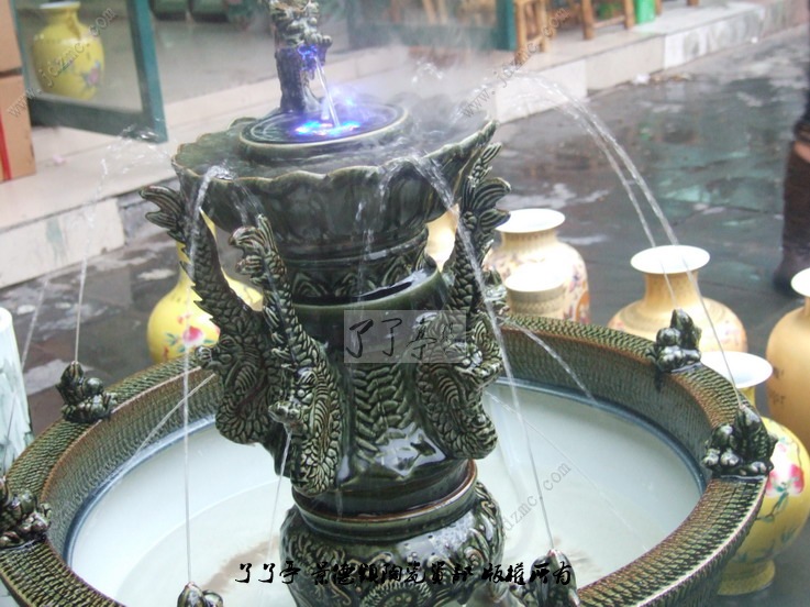 景德镇陶瓷的景观喷水瓷;主要装饰在家庭院落里面或者是景观配套.陶瓷作为一种特殊而古老的艺术品,在如今的现代休闲生态中是一种趣味的装饰风格.场面虽然不是那种壮观的味道,但是却给予了温馨的感受。