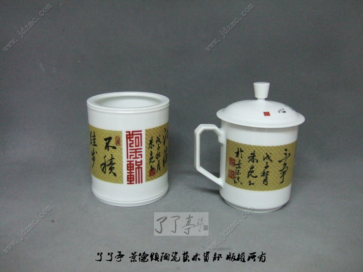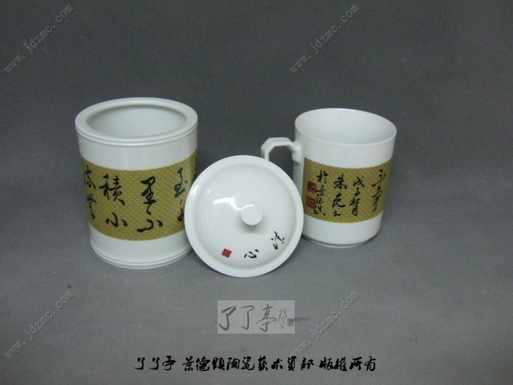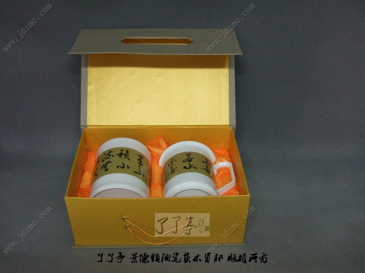 这是朱丹忱第一套主攻礼品瓷市场的贴花日用瓷具,该礼品瓷采用了高档的白胎瓷器,总体设计十分到位,透着一种文雅的风范。瓷器的制作请的是经验丰富的技术工人完成,.色泽光亮,质量上乘。