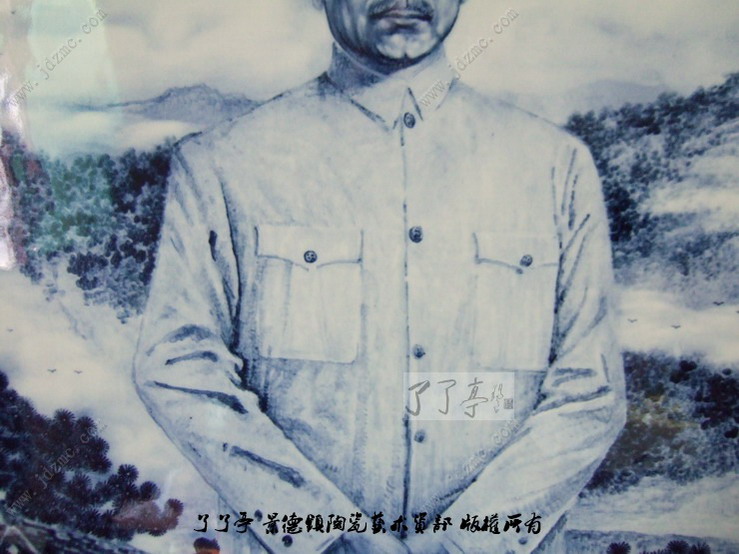 老师,应该说一辈子过来,我有过很多的老师,但是在陶院进修的那一段时间,有一位代课老师我的印象很深刻,他就是詹晓初。呵呵,那个时候,我不是一个好学生,他是教素描的,我没有兴趣,就搬着个板凳在学校画室的门口坐着。詹老师有空闲的时候就坐过来和我一起聊聊一些近代陶瓷的鉴定的事情,聊着聊着,我才发觉其实他是一个元代陶瓷的鉴定专家。那个时候,我们聊的很来,但是后来很多生活、婚姻等琐碎的事情将我的时间全部耗在了其他的事情上,于是和詹老师失去了联系。只是这一年来看到过他的几个新闻,说是他创作出了几块很有特色的瓷板。除此之外,似乎就没有更深的了解了。也许对于詹老师和那个时期的几个其他代课老师们来说,我这样的学生很多,当然也不会刻意记得我。但是,昨天,詹老师的一个朋友在我的店里面玩,说着说着的时候,突然谈到了詹老师,于是一个电话拨了过去,在电话那头接通的时候,我还真的不知道说什么好,但是当詹老师听到了我的名字的时候,十分高兴,约我到他的工作室见面。 来到了詹老师的工作室,里面全是他研究元代的各种技术产品,虽然我这次行程最感兴趣的也就是这些元代的技术资料,(过几天,我就会登出詹老师谈元代瓷器的技术资料。)但是他那几块青花瓷板还是给我留下了不错的映像。这几块瓷板全部是采用元代工艺制作的(只是瓷板本身除外、釉体、青花料都是模仿元代的矿物料),画面层次丰富,交代的非常清晰,色彩晕散和发色无不露出了一股特殊的味道。那么这是怎样的一种味道呢?我给您做一个小的文字交代,具体的您通过看视频dv和图片就明白了。了了亭·李申盛/文