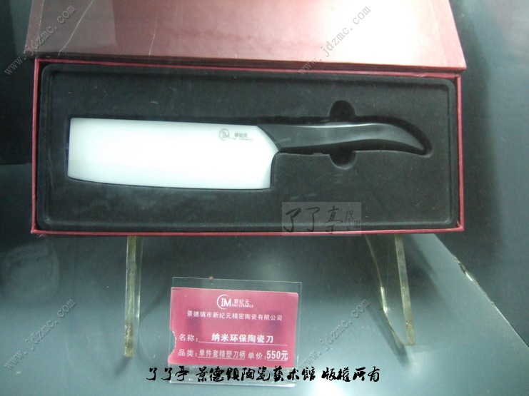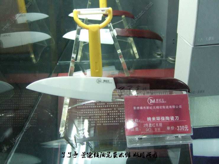经常接到很多朋友电话问询纳米陶瓷刀具体的价格,其实我还真不知道,昨天接了个莫名其妙的电话非要我去找一下,想想早上没有事情就去看了一下吧。陶瓷刀我个人觉得放在宾馆和一些高档的餐厅、酒吧很合适,档次高,有品位,或者在某豪华别墅的酒会上、茶几上摆上几个陶瓷刀即有品位又实用安全。只是以后机场保安就麻烦了,这陶瓷的东西在过安检的时候不报警,万一有歹徒持械(陶瓷刀)混进去了造成“劫机”的结果咋办。回来后,我也问问老婆要不要摆一个在家里面用,老婆惊诧道:“不要、不要”。我问“为什么”老婆说:“我了解这刀,这刀多少年不用利刃,相当锋利,但是只能切,不等剁,好像是不怕摔,可毕竟是陶瓷的东西,难保不会摔坏啊,用着就担心,送送礼品合适。了了亭·李申盛/报道