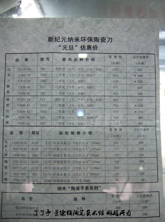 | 景德镇纳米环保陶瓷刀全系列报价 | |||||