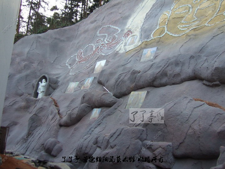 俞军家里的新景观是一座背靠山林的山体岩壁,开凿而成的佛墙,底部有青溪,山体灌木滴翠、绿草丰茂、鸟语花香,这一座景观耗费了俞军老师一年的时间来设计和完成,加上三宝哪里环境幽雅清静,风景绮丽多姿,气候温和宜人,真是难得的“洞天福地”。 了了亭·李申盛/文