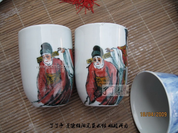 京剧作为国粹在陶瓷上进行描述的也有不少,其中代表人物有杨杰、章朝辉等,但是在许多学生中他们也在进行着探索。这件作品就是一个笔名“三杏”的学生创作的京剧人物系列之一。我个人比较喜欢他的作品,而且能够作为一个系列进行创作更是很难的,可由于功底的原因,一个好的题材并不能完美的在他的笔下进行展示。在人物的面部、肢体绘画语言上还有着一定的不足,可是这种探索精神应该得到褒奖和鼓励。了了亭·李申盛/报道