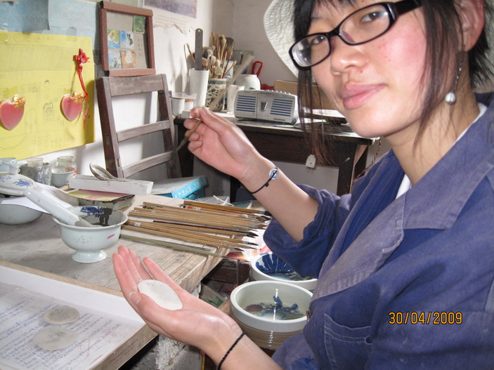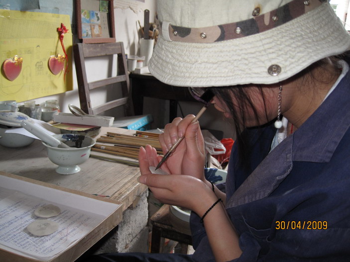 陶瓷首饰作为景德镇各个陶瓷院校创业的首选,其实陶瓷首饰的市场还是很不错的,价格学生们卖的也很高,几十块一个,具备相当的个性和独特性。可是因为同质化的现象太严重,各个陶瓷首饰设计的学生们的生活似乎都不是那么的理想。在网上看到不少文章将陶瓷首饰定位一个大的产业,不知道有没有很好的市场调查。只是,很多大学生把大部分时间都拿去搞这种小买卖了,好像对于上学本身花费的时间就少了很多。本文的主人公是一个来自河南的景德镇陶瓷学院的学生,叫做孙铁枝。通过图片您可以简单的了解陶瓷首饰烧制的方法,和一个绘画的单独图像。画面中那个铁丝是钨丝,耐高温。