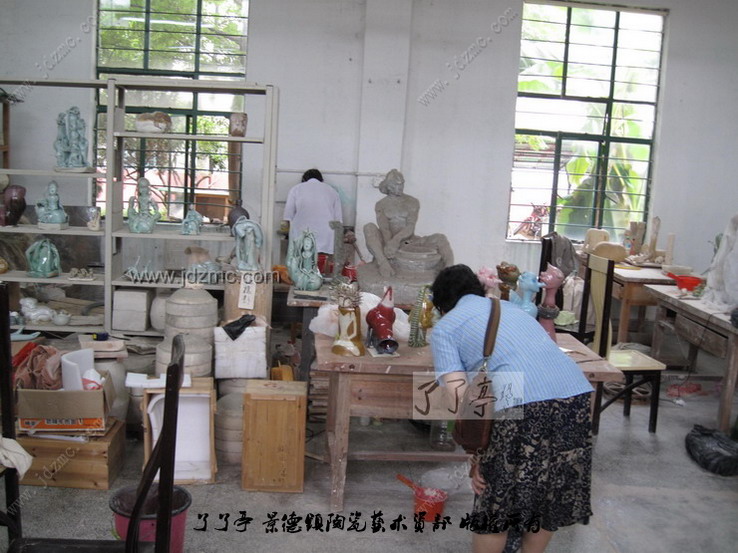 在景德镇这个城市已然十多年了,学院派的老师关系不错的很多,但是有一人,一直未曾有机会接触。景德镇这个城市很小,城市里空间距离不大,但是搞艺术的艺术家们却各有自己的生活的空间和轨迹。大家,都舍不得、和不知道能不能去打扰一下对方的生活。于是,今天,我陪同母亲在姚永康老师的几个同学的邀请下,拜访了姚永康老师。 姚永康老师属于那种平常里不方便打扰的、事务繁忙、身体不是很好的老先生。在去之前,母亲问我,要不要开车去,毕竟这行业很多人是只看外表的。我歪歪脑袋,想起了姚老师是经常骑着自行车上下班的,于是,我回答母亲,不用,骑我的小电驴子就可以了。什么样性格的艺术家,你就应该以什么样的本真的心态对待。母亲,笑笑,跨上我的小电驴子就出发了。 见到了姚永康老师,果然是骑着自行车来的。精神很好,一件浅色的条纹衬衫增添了活力。只是,姚老师还是那么消瘦。也是那种一眼看去就是学识渊博之人。 姚教授的话不多,往往是等待你将一段话全部讲完,他沉默许久再跟上你的话题。所以,我常常感觉自己好像是在跟自己说话似的,很多话题互动不来,因而多的时候,是我处在一种等待的尴尬之中。 幸好,母亲在场,及时的插入了很多的话题,拉近了大家的距离。对于许多学院派的艺术家们来说,市场好似魔鬼一样。因为来拜访之人多是一些曲迎之流,共同的话题少之甚少。谈陶瓷,不敢说是阳春白雪,至少,不能是艺术白丁。很多教授,不愿意与市场接触,我今天才估摸清楚原因,高傲也许只是一面,他们如何对待作品的方式,也是如何对待市场的方式。一个艺术家的精力本来就不是很多,疲于消耗在应酬之上,自然不能成为一个好的艺术家。因而,那些搞经商的艺术家往往作品是一塌糊涂,只是能够混上个把漂亮的职称或者称号。 在姚教授的工作室里面陈列的主要是世纪娃和一些半成品,我个人喜欢的是刘海戏金蟾,只是这些作品还是只是泥巴坯,并且已经放置了快一年了。具体什么时候制作成功还是一个未知数。 在姚教授旁边的是他的学生,在跟随着姚教授的学习过程中,她创作了出很多接近时代的当代陶艺作品。 视频连接地址:http://www.tudou.com/programs/view/8fVA83yDt5g
