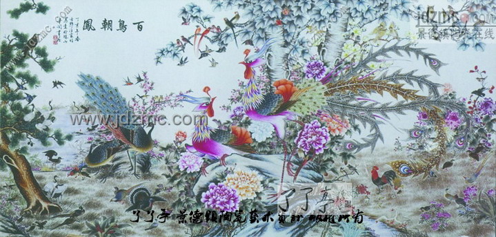粉彩技艺 俗话说:“外行看其表,内行看门道”,在景德镇艺术家当中,也有人画鱼,但多采用釉下青花或釉上新彩手法装饰,用粉彩画鱼的却较少。原因是传统的粉彩画,工艺流程非常繁琐复杂,画瓷和填色相配要求很高,烧制的各个环节需精确把握,否则功亏一篑。因此,有人说粉彩画是磨练人毅力的一门艺术。 汪家旺经过多年的悉心研究,成功掌握了釉上粉彩鱼藻图和粉彩绘画的技巧,所以他画的鱼,灵动飘逸,细腻逼真,着色油光鲜亮,比釉下青花和新彩更具质感。在构图立意方面,是进行心的创意和发挥,将荷叶、苇丛和四季花卉等融入画中,鱼的形态尽得其妙,画面意境深远,气韵生动,给人以美妙遐想。正是由于这些众多因素,才使汪家旺的陶瓷作品更具珍贵的艺术价值和收藏价值。 纵观200件的粉彩鱼乐图瓷瓶,他巧妙运用陶瓷粉彩装饰的艺术语言,描绘了一副追求上进,向往自由与快乐的美丽画面。瓶颈上方,一轮明月倒映在水中,显得夜色安逸宁静,瓶腹中,九尾大小不一的鲤鱼,用工笔描绘,条条细腻逼真,游姿生动,昂首摆尾,向着月亮的方向游去,绿色的水藻随着泛起的清漪飘逸摇摆,给人一种动态。而别有韵味。在构图上,作者有意把鱼儿游动的方向引向瓶颈,这样既能使画面和瓶体挺拔向上的造型达到和谐统一,又较好反映了乐观向上的主题,可谓匠心独运,给人以美的享受和心灵启迪。 1994年,汪家旺第一次和朋友一起到东莞进行了一次作品展出,而真正让他开阔视野的一次个展是2006年,那时在香港开个展的汪家旺接触到了众多的外地艺术家,此次经历令他受益匪浅。 游刃有“鱼” “书山有路勤为径,艺海无涯苦作舟”。几十年来,汪家旺在陶艺创作领域,不断开拓创新,不仅技艺日益精湛,画科也与日俱善,他除画鱼功夫独到外,在山水、人物、花鸟、梅花、走兽等题材方面也都有很高的造诣。 再来欣赏一块长2.4米、宽1.2米的大型粉彩瓷板画《百鸟朝凤》,这是汪老师为庆祝新中国60华诞的扛鼎之作。 作品以高大硕壮的梧桐树和鸟中之王凤凰为主画面,四周伴有孔雀、飞燕、鸳鸯、白头等108只形态各异的鸟栖息或飞翔在花丛、树木或灵石之间,它们或扑戏、或私语、或低鸣,一鸟一枝,静中有动,寓动于静,呈现一派和谐幸福与安宁,寓意着祖国的统一和繁荣富强。创作如此大规格的瓷板画,在瓷都艺坛都是罕见的,因为作品无论是在构思、绘制、设色、烧制等各方面都有很高的技术要求和工艺难度。汪老师花费大量心血将它创作成功,不仅展现了他的艺术功底,也寄托了他对祖国的无限热爱和美好祝愿,堪称是不可多得的艺术佳品。 几十年的辛勤耕耘,汪家旺在陶瓷艺术的创作领域取得了丰硕的成功,其作品不仅在国内外大赛中屡屡获奖,而且深受港、澳、台等海内外人士及博物馆的喜爱和收藏。对他的从艺经历和艺术风格,国内外许多著名刊物和新闻媒体也多次进行了介绍和专题报道。 而今,汪家旺在陶瓷创作领域已是娴熟自如,名声鹊起,然而面对业绩和荣誉,汪家旺没有丝毫懈怠和自满,而是以激流涌进的精神,在陶瓷艺术的海洋中,继续搏击冲浪,永争上游。 |