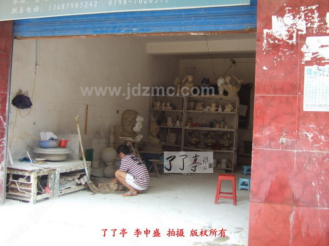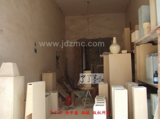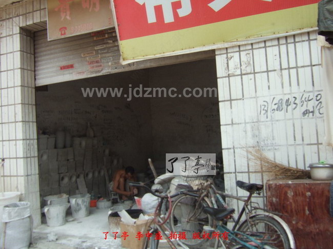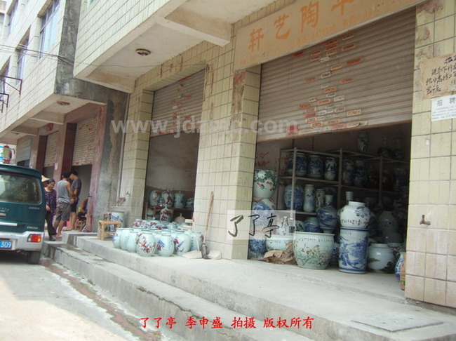 可是几年前的政府区域整顿,大量的窑口不能在市区内进行烧制,因此陆续老厂所有的窑口全部被迫关闭迁往市郊各地,窑口没了,自然其他工序也逐渐断了链子,从而几年后的今天的老厂就展现成了了亭·李申盛照相机下的现状,原来的车水马龙已经变换成了萧条,一条街的最前头都被开发成为了小区住房,街里面大多数的门面都已经他用,做瓷器的非常少了。说句心里话政府的强制规划的行政方式并没有达到预想的目标,却让大量的工坊因为成本的压力和收入的锐减大量消失。就目前来看景德镇的老厂还会越来越萧条,可能“老厂”这个陶瓷商业中著名的品牌最终沦落成一个城市地名。了了亭·李申盛/文
