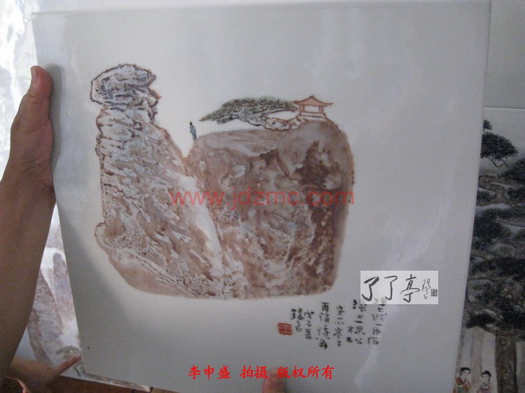 王锡良老师能不能画,现在还在画吗?这一直都是收藏界的朋友们的疑问。一些心怀叵测的人物到处败坏老艺术家们的晚节,这些散布谣言的人物中不少还是某些名家的后人。今天公布这样一组画面共三个瓷板,为王锡良大师08年中旬的新作,作品的风格特点不用笔者来介绍了,也务虚笔者评头论足。一个时代造就一个英雄,王锡良大师这个时代不可能重复,随着年龄的增大他的作品的风格也在变化,这和老人家的体力和精神有着直接的联系,不存在敷衍的概念。为什么我这样说呢?因为这三块板子都是留给王锡良老师三个子女的。应该说王锡良世家的家学、家风是非常严谨的,在这个物质时代中你完全可以从他们世家的作品中发掘出“清泉石上流”的意境。了了亭·李申盛/文