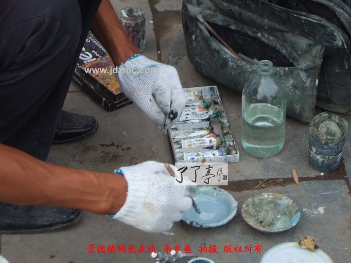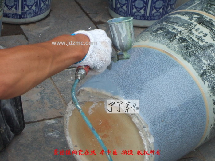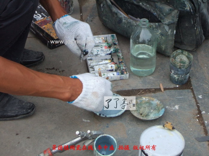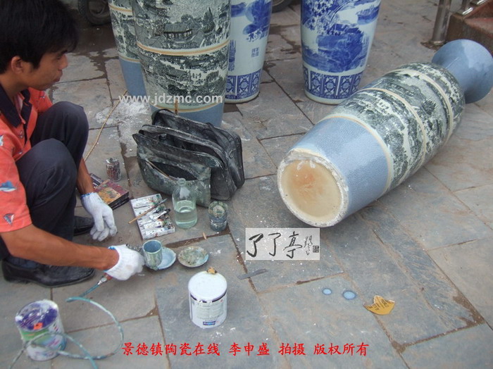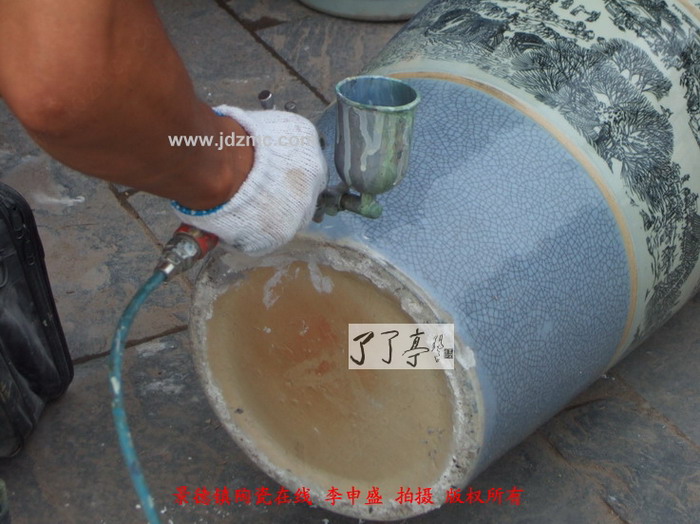 这几天景德镇陶瓷展销会逐渐热闹了起来,而随之的很多修补瓷器的工作也开始了,因为为了降低成本其采购的瓷器往往选择一些有问题的瓶子,然后经过专业修补再拿出去卖,本来展销会就是游商,卖完了就走,你发觉了后他已经在千里之外了。今天您看到这类补瓷的手段是很普通的,通过油画颜料加上一定的油漆物质增强粘合性从而达到修补的效果。这类补瓷主要是通过粘合物质将裂隙和破损位置补齐后,调和颜色达到相似效果后再喷涂上去。但是其保存时间难以超过半年,半年后这些修补的位置会泛黄从而一步步露出马脚。了了亭·李申盛/播报