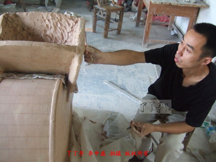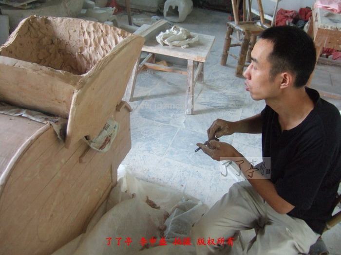 今天我流窜到陈烙铭老师的工作室里面去,正好他在创作民俗系列的雕塑作品,他创作的民俗作品的题材主要来自于那些存在于历史、农村、市井和部分地域所特有的日常、农业等工具用品。这些形象深刻的反应了一个社会、时段等的历史变迁,烙印在一个时代人的生命之中,他们看到这些形象就能联想起家乡的风、土、人、情。笔者李申盛觉得这类题材的作品十分适合在一些高尚酒吧、商业场所摆放,不仅点缀了空间更提高了文化品味。了了亭·李申盛/播报