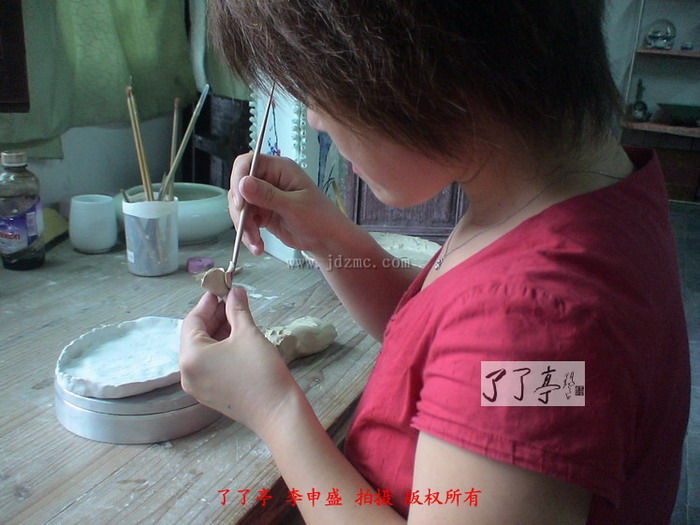 主讲人:王章清 高级工艺美术师,1972年出生于景德镇,毕业于江西省轻工业学院,在刘远长的工作室从事陶瓷创作工作。多年来,蒙承刘远长大师的悉心指点,使她的瓷雕作品无论是在工艺性上还是艺术性上都有了长足的进步。 近年来,有: “田园风情”、 “梦想成真”、“凌方”捏雕花盘及花饰系列均受到广泛赞誉。199了年11月,她参加了上海首届现代陶艺博览会的陶瓷文化交流,2001年11月应邀在上海全国商品交易会上进行景德镇陶瓷提雕的现场表演。2002年元月与陶院教授联合创作大型瓷雕壁画“百鸟朝凤”。