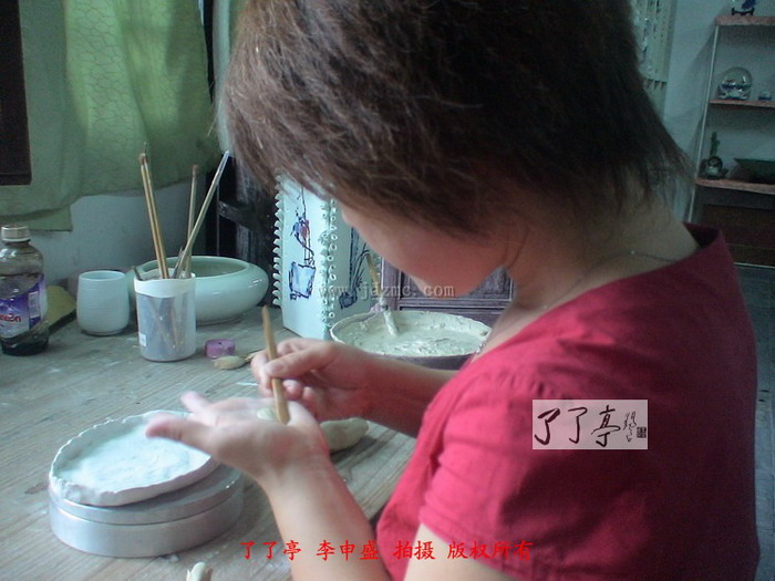 一直以为雕塑中的捏雕工艺并不复杂,也不繁琐,这种印象主要还是源于制作的人员众多,价格也不是很高。然而在今天我才明白捏雕所花费的功夫是如何巨大了,您可知道捏一朵花,复杂的花形至少要20分钟,一个作品上堆的那么多花朵常常需要花费几天的时间。再说一个您未必知道的内情,一朵捏雕菊花有400根菊花瓣,这个是有人亲自数过。您想想对于一个艺术家来说是多么复杂和艰巨的事情。我一直认为艺术没有高低,没有新旧,没有贫贵,没有白花齐放,就没有陶瓷艺术。