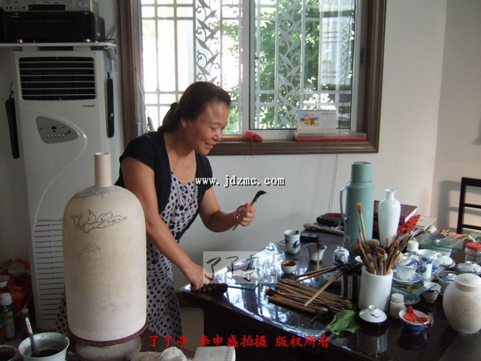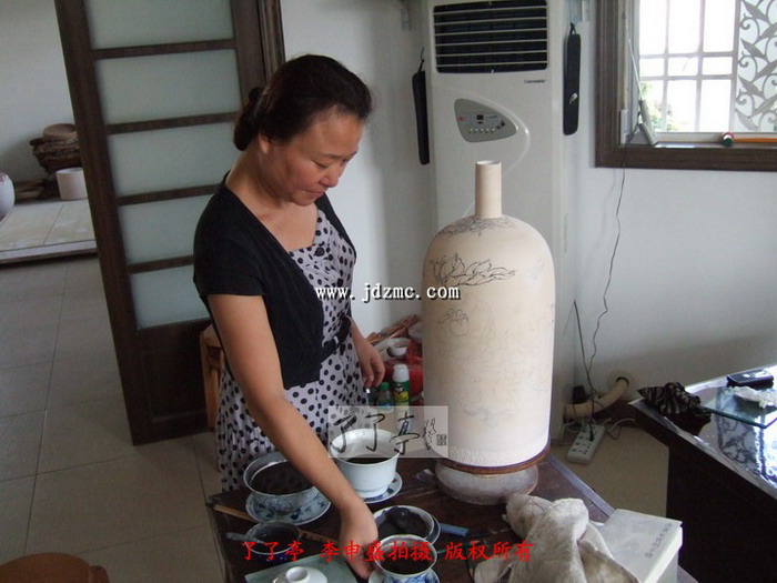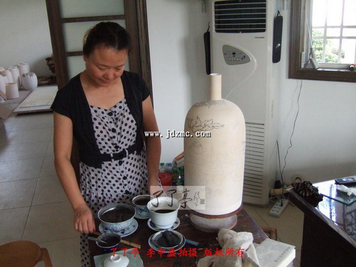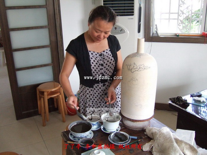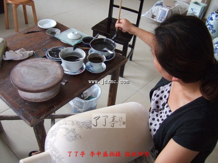 青花分水中什么平、晕、洗点这类技法就是一般人都是看的云里雾里的,其实有些学问道起来是长篇大论,实际操作起来都是有规律可循的。为了让大家能够直观的看到青花分水实际操作视频,我特地请於彩云老师做了一小段视频讲解。因为前面准备工作不足所以大家看到的是一段较为简单的画面分水过程,过一段时间於彩云老师准备安排我拍摄超大瓷板的分水工艺,我想这个应该值得大家期待吧。