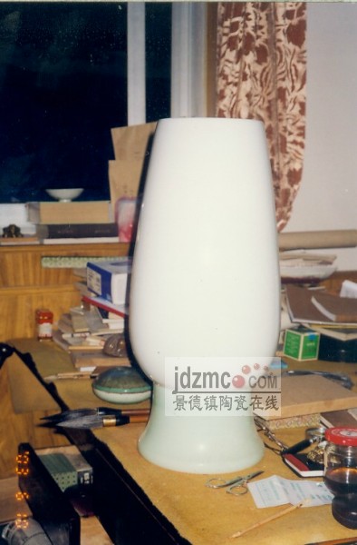 了了亭武汉店正在进行重大调整,因为人力资源有限了了亭未来的发展将着重以根居景德镇为主,因而这几天笔者正在武汉清点仓库。刚才在一堆老照片中我发现了这个瓶子,时间定格在03年6月10日。当时是母亲陈也君女士应一位收藏家的要求请王隆夫老师绘制一件瓷器,那个时候王老师精力和眼力都很好,因为我们两家关系不错,王老师同意挑选瓶型和画面。呵呵,母亲也不客气,挑了这个器形。其实这个器形是为了收藏家朋友占个便宜,器形虽然核算的是200件,但是王老师核算的是上面白胎部分,而如果加上下面影青釉一段的话,整个器形已经是300件了。