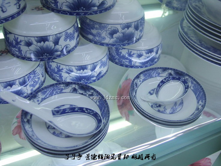 接上面的高档陶瓷餐具的一篇文章,这一篇是朋友经过挑选认为釉中彩的安全性更好,毕竟釉上彩总是心里面有阴影,所以指定要釉中彩。于是我再一次到窑主那找了另外两种产量不多的釉中彩餐具拍照。窑主告知笔者因为釉中彩的烧制成功率不高的问题,很多花面往往生产的不多,主要也就是围绕其中设计和销售的最好的一种进行制作。毕竟景德镇陶瓷的日用瓷市场完全不如其他产瓷区,现在的产量根据市场的销售情况来安排。而且设计成本很高,另外釉中彩的日用瓷餐具中好像根据瓷质有高低的区别。呵呵,太麻烦了,反正拍了下来,大家自己看看。