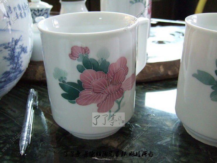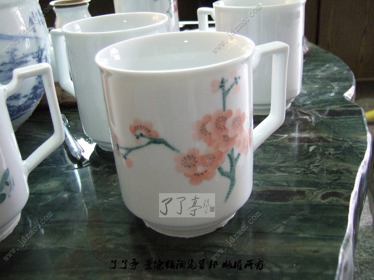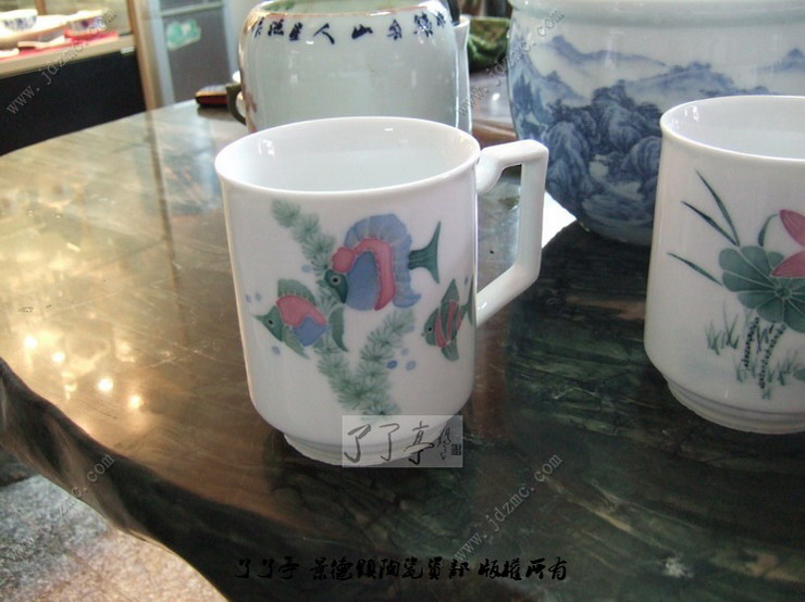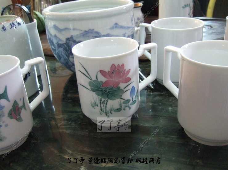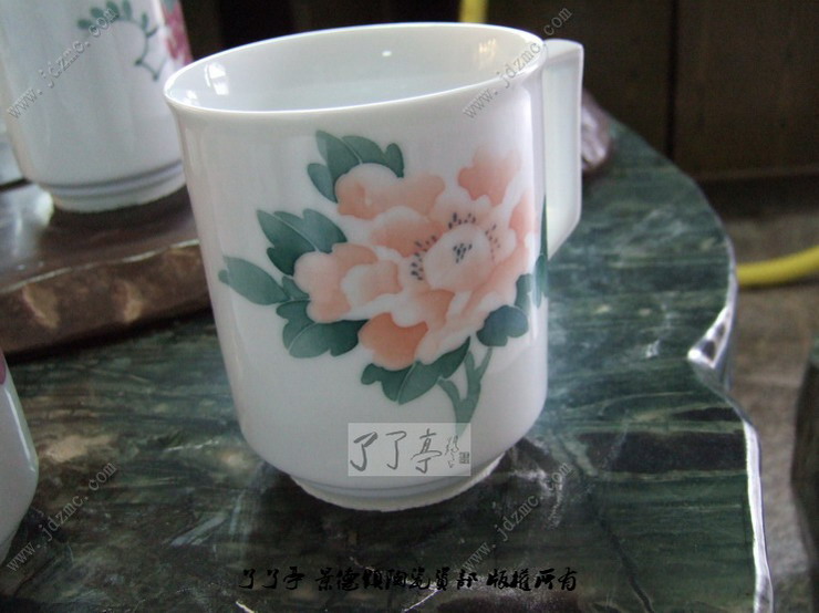 图中是景德镇釉下五彩绘制的醴陵釉中彩味的茶杯,当时我看到这些茶杯的时候还真的以为是醴陵的釉中彩,拿在手上把玩的时候还有刚刚出窑的余温,由此我才产生了怀疑。当我把看底部的时候看到了四个字“景德镇制”。这些手杯制作的比较精美,要价在100元不到。绘制者是一个30左右的女画师,第一次制作这种杯子,看来功底还是有一些的。了了亭·李申盛/播报