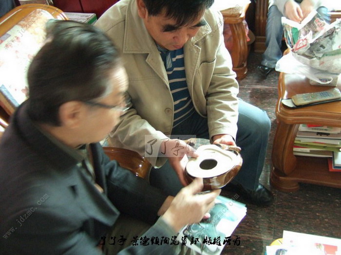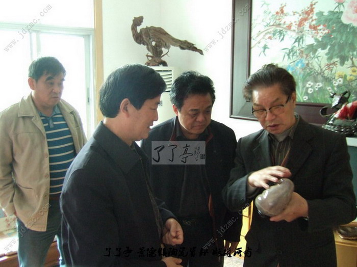 周国桢曾经在湖北宜昌一个雕塑工厂搞过设计一段时间,创造了一批动物雕塑的灌浆模具,由于这类在当时都只是定位于礼品,并没有留下周国桢的任何印记。然而经典不会因为时代隐去,周国桢的这些设计在当年投入生产而留下的很多作品被当地的收藏者追捧。在多年的艰辛收藏历程中他们一直在和了了亭保持着联系,终于在今年粉丝团来朝圣仰慕已久的周教授。因为这一批作品没有任何的印记,最后的真假还得周国桢来断定。在了了亭的联系下,周国桢很高兴的为他的宜昌粉丝们做了相关鉴定并引领参观了周国桢陶艺馆。只是可惜的是,因为是灌浆的作品,同时受到窑口的限制,很多色釉的离幻并没有表现的完美。因而历史参考和研究价值高,但是这批作品中有相当价值的很少。