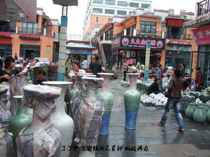 不久前随着景德镇第一轮冷空气影响下,陶瓷市场仍然兴旺,虽然有不少店主的单子下降,但是总体市场还是没有天气那么寒冷。景德镇国贸是展销会和小经销商采集的主要地段。下着小雨,笔者看到,许多店铺门前堆满了卸下或者等待装车的货物,很多经营户在整理。笔者在各个街道上随便的走了走,各类瓷器琳琅满目,通道上提小件、扛大箱的客商川流不息,大大小小的车辆正源源不断地从市场往里外运输……