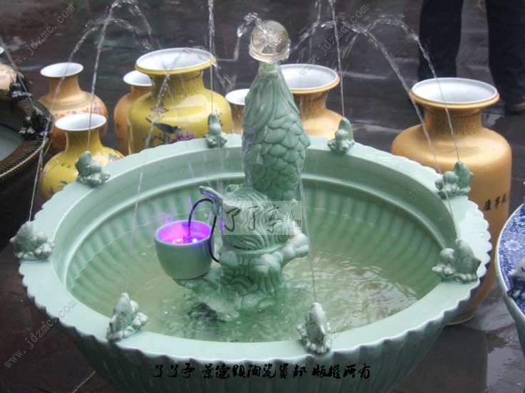 景德镇陶瓷的景观喷水瓷;主要装饰在家庭院落里面或者是景观配套.陶瓷作为一种特殊而古老的艺术品,在如今的现代休闲生态中是一种趣味的装饰风格.场面虽然不是那种壮观的味道,但是却给予了温馨的感受。