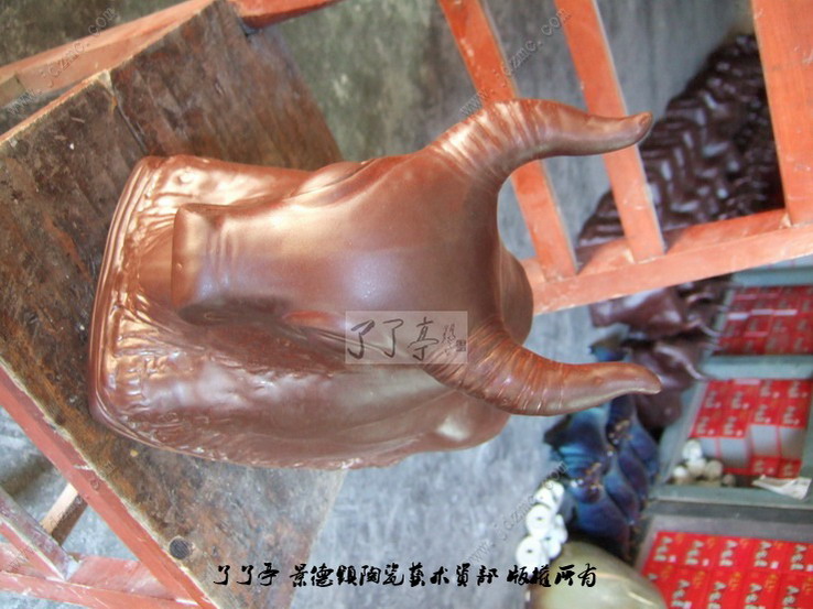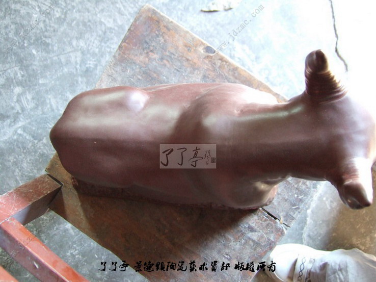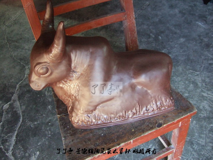 好牛,一般都很牛。刘远长大师199号牛已经确定了限量号码和最后形体以及釉色,看着这头牛,我遥想在那土地肥沃,水草丰美的地方,出现了一头神牛,体型硕大,席地而卧。这估计就是老刘希望完整的形象,他想通过古铜般的釉色,厚重的形体特征来给予人们一种安定的心态。同时也是希望有一件那种一眼可见大地上的“水墨雅品”,作品放在那里,你会有些忘情,脚下是无边无际待耕的田野,黝黑的身影像一座山。了了亭·李申盛/文