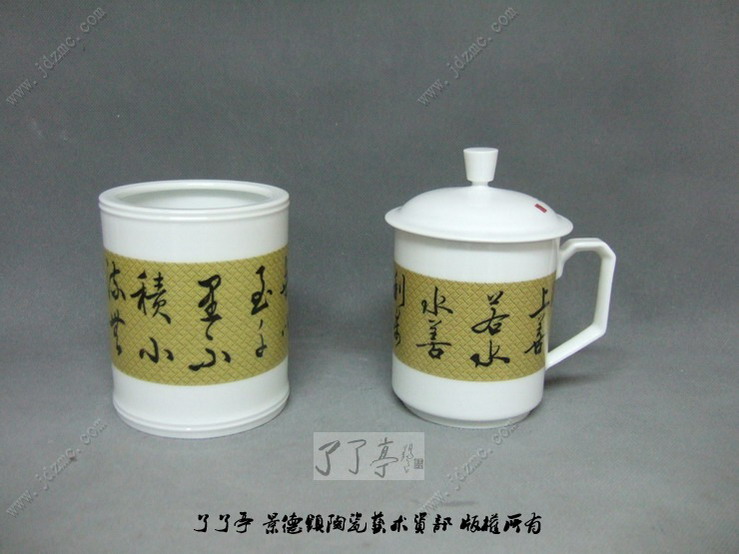 这是朱丹忱第一套主攻礼品瓷市场的贴花日用瓷具,该礼品瓷采用了高档的白胎瓷器,总体设计十分到位,透着一种文雅的风范。瓷器的制作请的是经验丰富的技术工人完成,.色泽光亮,质量上乘。