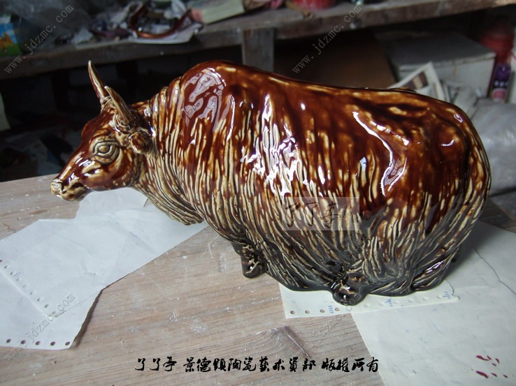 今年是牛年,牛的雕塑自然而然的成为艺术家非常注意的方向。我看到了很多很多的牛的雕塑,感觉到景德镇的雕塑已经开始趋向于一种化合物,多元的文化和力量在其中奔腾博弈。艺术家们不仅仅只是为了寻找一个符号或者形象去完成动物的形体,张正海老师的牛年的编号雕塑我个人认为是陶瓷雕塑中一个值得推荐的作品,他的这个雕塑用充满力度的雕塑语言,阐释了雕塑人在一片文化荒芜中开垦的心态,所展示出来的一种激情和憧憬。