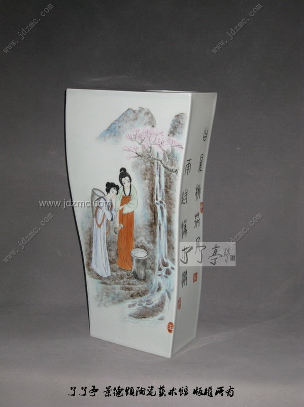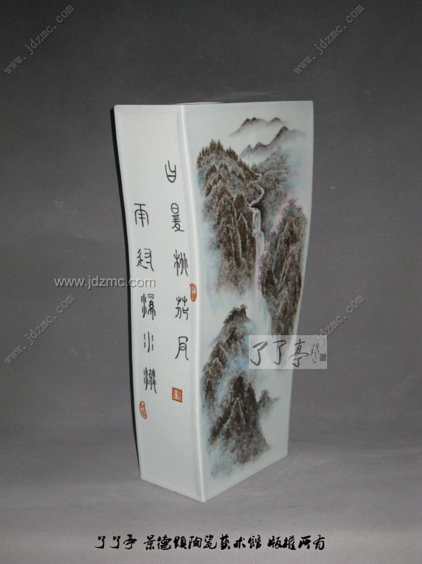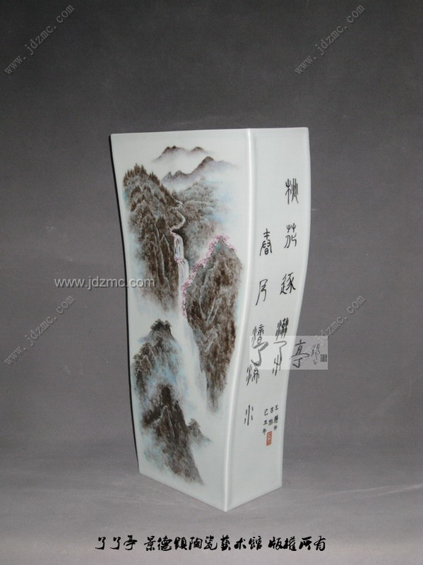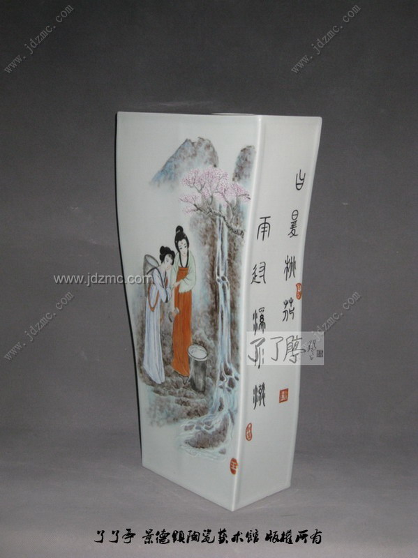 您眼前的这件镶器是经过了王锡良老师点评的,一个月的心血,我的总结是王静想拿块豆腐撞死。呵呵,王锡良对王静的第二面的那个人物画评价不高,但是对山水还是颇有赞赏。王静是嬉皮笑脸的接收下来,在视频中自我的那段描叙可以看出他们和今天的年轻人创作态度。