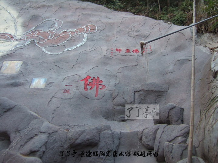 俞军家里的新景观是一座背靠山林的山体岩壁,开凿而成的佛墙,底部有青溪,山体灌木滴翠、绿草丰茂、鸟语花香,这一座景观耗费了俞军老师一年的时间来设计和完成,加上三宝哪里环境幽雅清静,风景绮丽多姿,气候温和宜人,真是难得的“洞天福地”。 了了亭·李申盛/文
