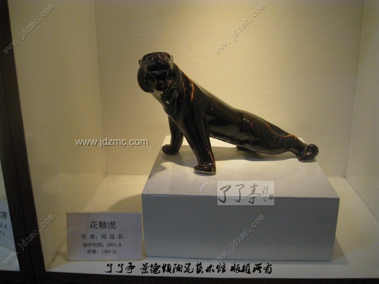 刘远长的虎年老虎生肖一直都是收藏者一个重点关注项目,而刘远长的老虎虎年生肖是什么样的呢?呵呵,我给您描叙一下吧。记得刘远长的第一只老虎是一个写实的老虎,这个图片您在下面看得到。而后来陆续出现的都是线条优美的老虎,而今年的老虎,也一定会是一个非写实,有着优美曲线的老虎。它会是一个站立还是一个卧虎,应该是后者吧,因为他已经设计过了一个站着的老虎,可以看下面的图片。老虎做咆哮装,周身高温色釉,不会采用亚光、无光等素色模式。刘远长大师这几年的生肖走的都是高温色釉装饰,而且结晶釉体用的比较多,所以今年应该也会是结晶釉。