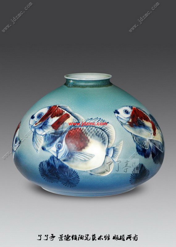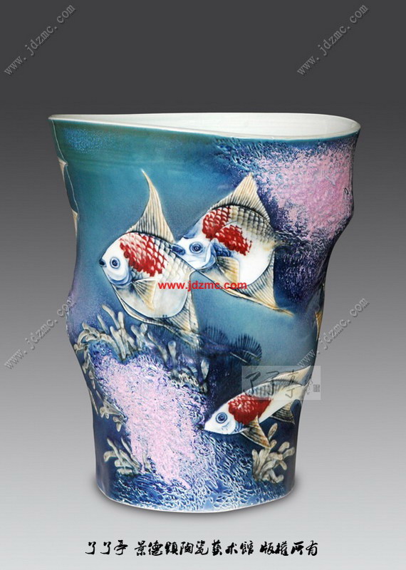 这些作品是胡景文大师最新的高温色釉陶瓷作品。胡景文他是一个工作严谨的人,但他的作品大胆也前卫。外形设计和色彩的运用,使得海洋系列的每一个作品都是那样的真实并且富有想像力。想雅首先就得免俗,优雅就是更高级的雅。想优雅就必须形而上,否则脱不了俗,又如何得以优雅。这是法国人唯美主义的影响,那种鱼儿优雅游动的仪态,一个唯美的世界是更容易成就优雅的。似乎一个作品是否更具备审美质感,那种少了烟火气的美感,让人欣赏,却保持着一种矜持,等着你去赞赏。