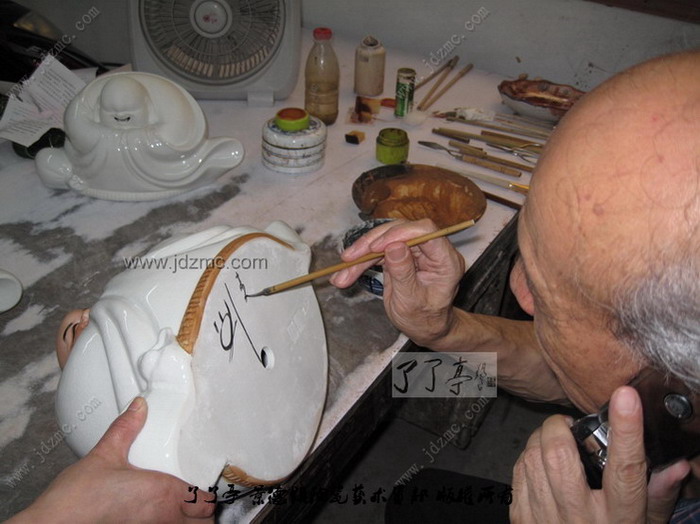 刘远长的作品,特别是一些经典的,编号的作品刘远长大师都会在底部签字,而且,这些签字一定都是本人签写的。另外刘远长大师的签字是很有特点和一致性的,因而,鉴别的方法也比较简单。仿制品的哈哈罗汉基本上都是一个印章而已,当然也有签写刘远长几个字的,但这种签写刘远长名字的赝品市面上并不多见。刘远长的哈哈罗汉有墨迹和刻写两种,1988.8只是改作品的创作时间,这一点不要混淆了。