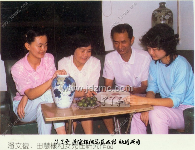 潘文复,男,一九三八年生於江西景德镇,高级工艺美术师,系临瓷美术世家潘庸秉之子,自幼受父教诲,又师承陶瓷名家张志汤,专攻粉彩绘画,後以优异成绩考入景德颂陶瓷学院,现任艺术瓷厂总工艺美术师,系中国工艺美术学会会员,省美协会员,擅长高温颜色柚、青花玲珑瓷装饰,作品多以高温色袖综合装饰,自然娇美,融汇了各种艺术之长,风格深沉浑厚、古朴,内涵丰富,具有的一般的意境。他的力作《金色桂林》采以高浏釉综合装饰,别有新意地描绘了桂林金秋的美景1,层次清晰,格调明快自然。他创制的彩色玲珑薄胎碗一九八三年荣获国家银质奖。