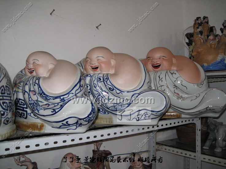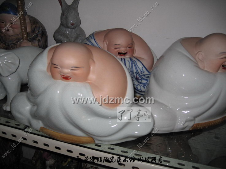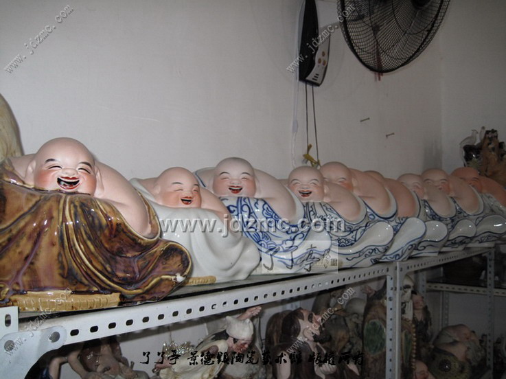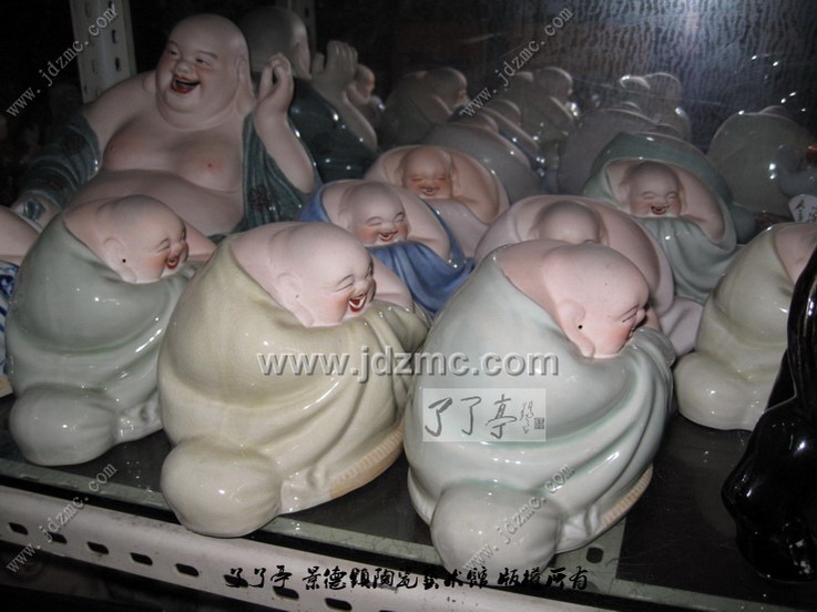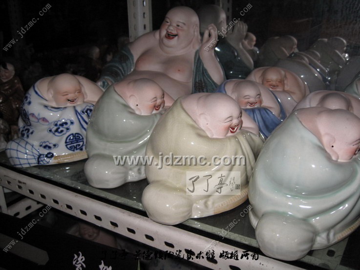 哈哈罗汉也许是一种经济,这个经典的雕塑形象不仅养活了许多作坊,也派生出了各种各样的形状和装饰手法,量产形成相当的规模。今天笔者为大家带来的就是市场上销售的各种各样的哈哈罗汉瓷雕的一个小部分,有很长,有绿色的,有青花的,有斗彩,有描金的,有白纹片的。哈哈罗汉这个大家族正在以其蓬勃的生机被许多家庭作为装饰和礼品的最佳选择。