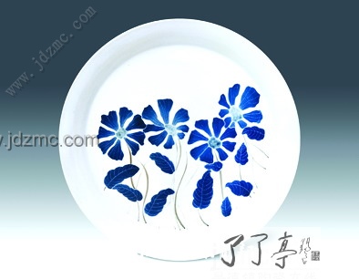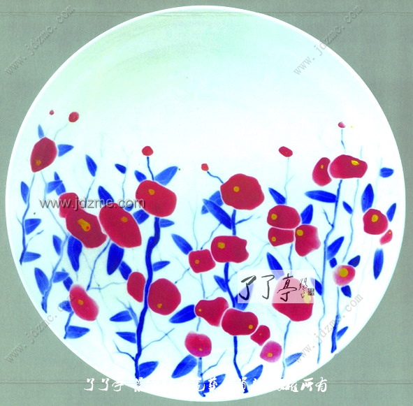 到了申东勋的工作室就知道,一个男人,他对花朵的喜欢已经融入了血液。无论是瓷盘、瓷板还是小件茶杯,图案几乎都是花朵。荷花、菊花、梅花、向日葵、蒲公英和各种各样不知名的小花开满了他的工作室,花枝招展满园春色。