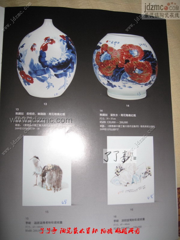 | 0013 | 熊钢如 长相依,乐融融·青花釉里红瓶 | RMB 100,000-200,000 | 112,000 | 127,128 | 16,800 | 12,320 |