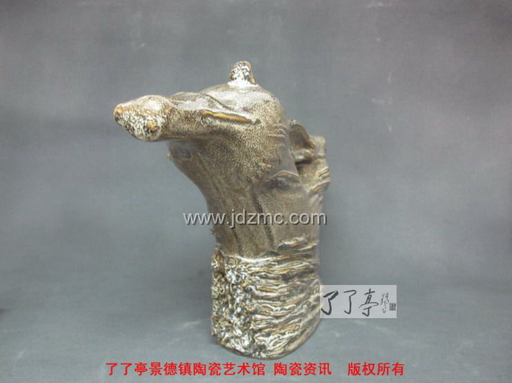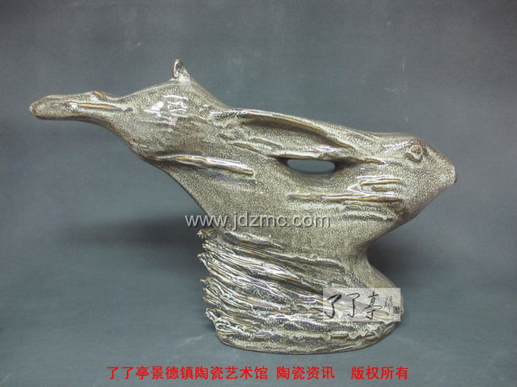 了了亭首家报道:刘远长2011年兔年第一件推出的生肖陶瓷作品是限量799号的《奔月》,在拿到这件作品的时候,刘远长大师出差在外,这个“奔月”的取名缘由等不及刘远长老师来讲解了,只有我捕风捉影的代为解释一下,在古代中国兔子代表月亮,那长长的兔耳表达了沟通和融入大千世界的愿望。这只可爱的“奔月”通过其拟人的命名赋予了这世间最普通的物种以灵性,通过其优雅的动态赋予了温顺灵动,给人以精细入微、纤毫毕现的感觉。