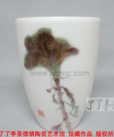 唯一的区分方法是把数个同样的茶壶,茶杯放在一起,手工高度和宽度等应该是有些区别的,只是很微小而已。而非手工胎的,应该是完全一致。但是,有一点需要说明,手工胎和非手工胎不是价格高低的衡量器,7501毛瓷-毛主席用瓷可都是非手工胎的,但是它是瓷器界的神话。器型是灵魂,胎质是根本,釉质是补充。一个茶具我不关心它的手工不手工的概念,比如我今天到一家瓷厂去调一批普洱茶的茶饼盒,看到了几个新开发的小杯器型,画的青花釉下红,正好放在窗台上,通透的同时,不失釉色的滋润,令我不知不觉就把它拿起了。这样的茶杯,茶具的评价体系中,器型的比重是50%,胎质是30%釉质是20%,画什么,不在计算价值范围类,因为画上去了,名人的几万,不是名人的几十。了了亭·李申盛/文